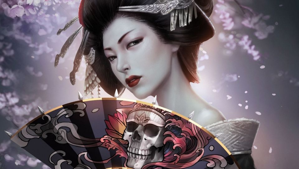 Japanese Geisha With Skull Art Fan